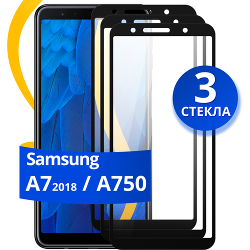 Комплект из 3 шт. Глянцевое защитное стекло для телефона Samsung Galaxy A7 2018 и A750 / Противоударное стекло на Самсунг Галакси А7 2018 и А750
