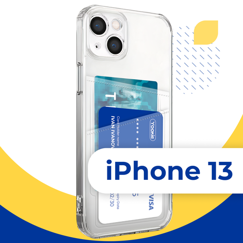 Силиконовый чехол с двумя карманами для карт на телефон Apple iPhone 13 / Прозрачный картхолдер с отсеками для Эпл Айфон 13 / Защита камеры