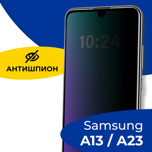 Защитное стекло Антишпион для Samsung Galaxy A23 и A13 4G / Противоударное стекло на Самсунг Галакси А23 и А13 4Г / Черное