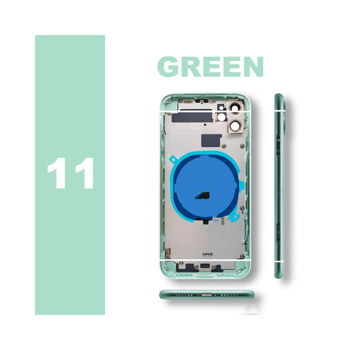 Корпус для iPhone 11 зелёный с логотипом / Задняя крышка айфон 11 в сборе со средней частью