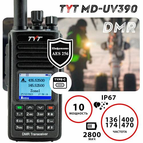 Цифровая рация TYT MD-UV390 10Вт DMR AES256, TYPE-C