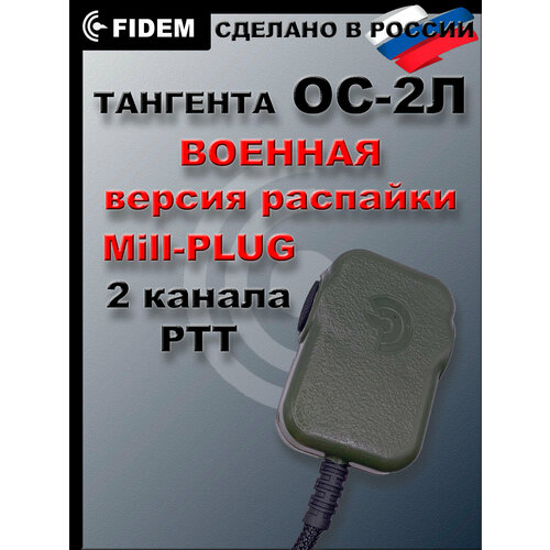 Тангента для рации Baofeng, Kenwood, ОС-2Л(зеленый/олива) радиосвязь FIDEM, Военная версия распайки