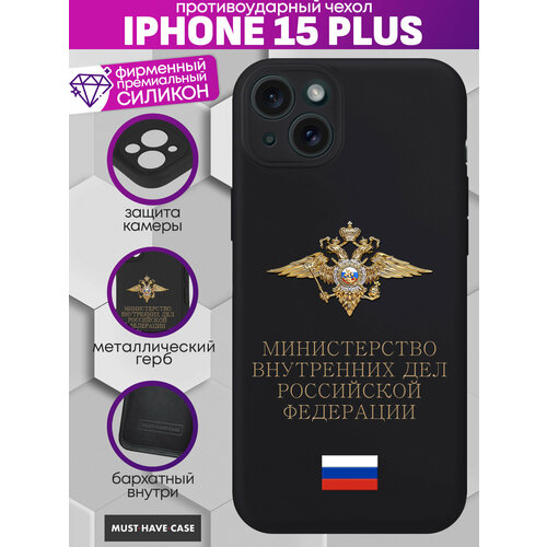 Чехол на IPhone 15 Plus Премиум с Металлическим Гербом МВД РФ