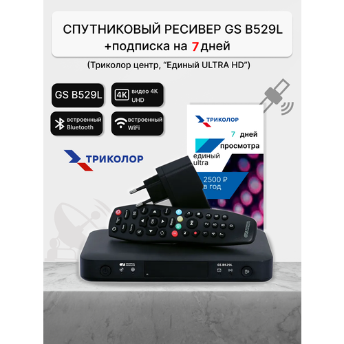 Спутниковый ресивер Триколор GS B623L/B523L/B626L+подписка на 7 дней (Центр, Единый Ультра HD, 2500 руб./год)