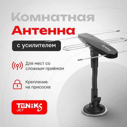 Антенна для телевизора комнатная Teniks JET с мощным усилителем 20 Дб черная