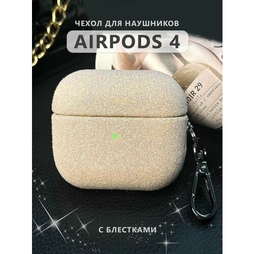 Чехол для наушников AirPods 4 (2024) текстильный с блестками с карабином