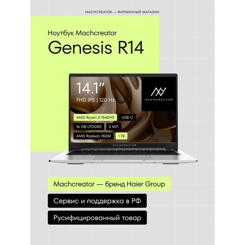 Ноутбук Machcreator Genesis R14 14" IPS FHD 120 Гц, 16 Гб/1 Тб, AMD Ryzen 5 7640HS, Radeon 760M, без ОС, русская раскладка, серый