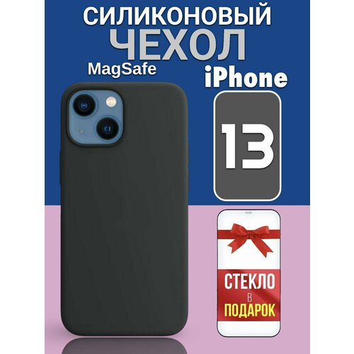 Чехол силиконовый на iPhone 13 MagSafe c Анимацией + защитное стекло 9D на экран (Темная ночь)