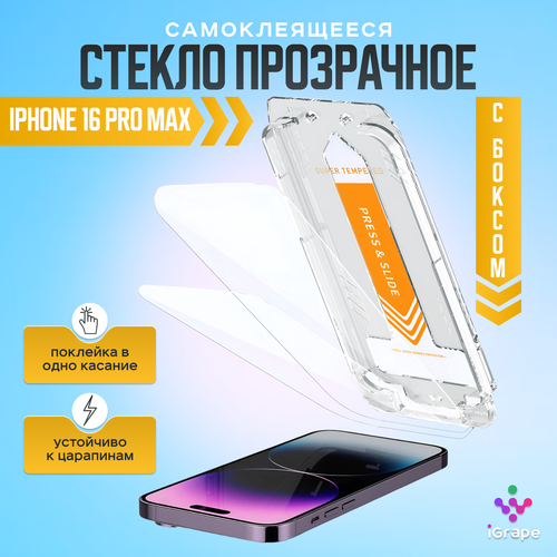 Защитное стекло самоклеящееся с боксом iPhone 16 Pro Max, iGrape (Прозрачное) / стекло на айфон 16 про макс