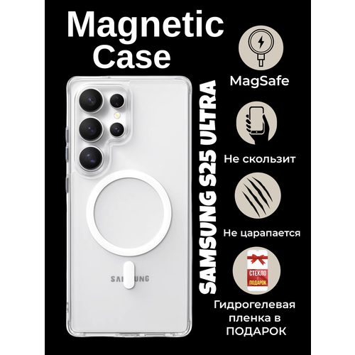 Комплект для Samsung S25 Ultra : прозрачный чехол с MagSafe и анимацией + Гидрогелевая плёнка (полная защита)