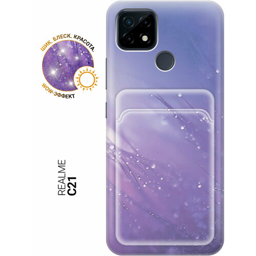 Силиконовый чехол на realme C21 / Рилми С21 с рисунком "Капли на синей траве" и карманом для карт