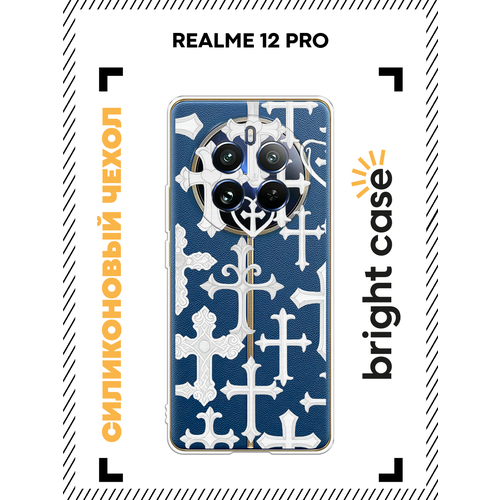 Чехол на Realme 12 Pro/Realme 12 Pro Plus / Реалми 12 Про/Реалми 12 Про Плюс с принтом Белые кресты, прозрачный