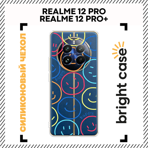 Чехол на Realme 12 Pro/Realme 12 Pro Plus / Реалми 12 Про/Реалми 12 Про Плюс с принтом Смайлы, прозрачный