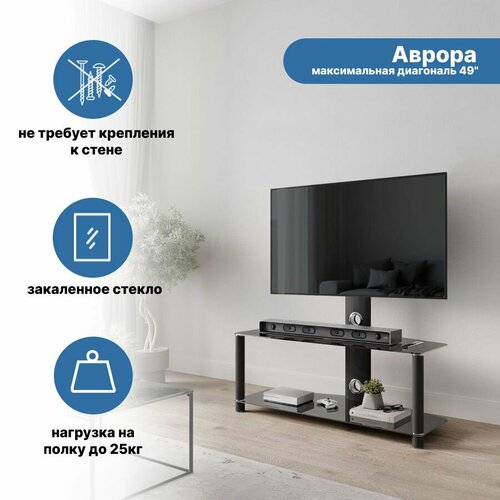 Подставка под телевизор, Аврора, металл, металл, закаленное стекло