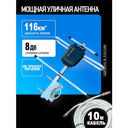 Пассивная антенна для телевизора Альфа 111 с кабелем 10 м. уличная цифровая