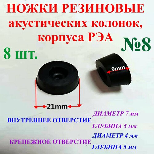 8 шт. 21х9 мм Ножки резиновые, акустических колонок, корпуса РЭА. Диаметр-21мм, высота-9мм, №8