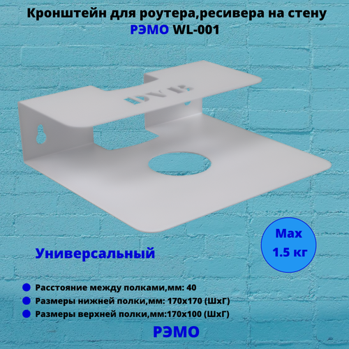 Кронштейн-полка на стену металлическая для DVB-T2 приставок Рэмо BAS WL-001(Wall Shelf-S)