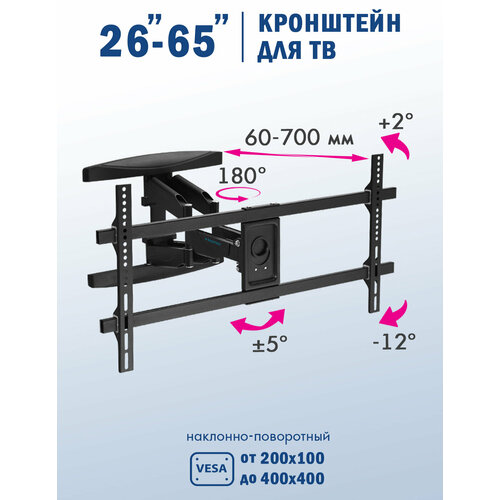 черный, blackКронштейн для телевизора 32"-75" наклонно-поворотный
