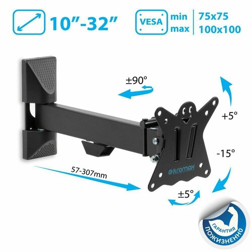 Кронштейн для телевизора настенный наклонно-поворотный Kromax DIX-15 15"-28" до 30 кг Dix-15