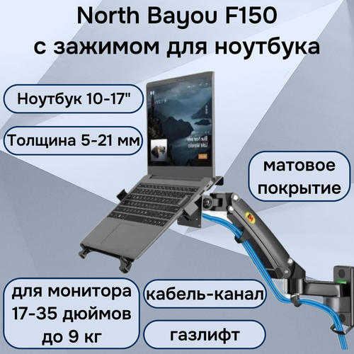 Настенный кронштейн NB North Bayou F150 с зажимом для ноутбука 10-17" FP-2 (F150-FP-2), черный матовый