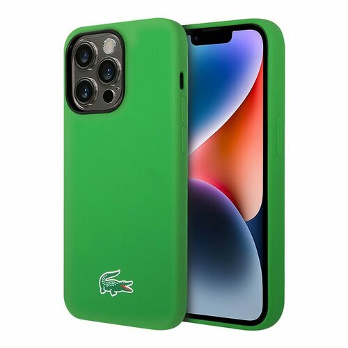 Lacoste для iPhone 14 Pro чехол Liquid silicone Croc Logo Hard Green