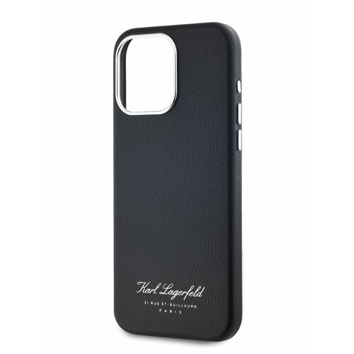 Lagerfeld для iPhone 15 Pro Max чехол PU Full Wrapped Grained leather & Metal Camera Hard Black
