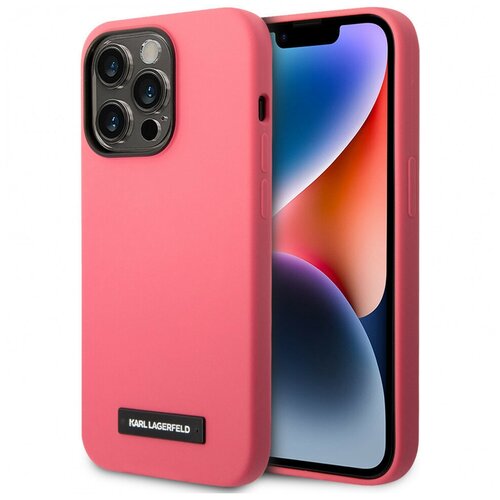 Чехол силиконовый Karl Lagerfeld для iPhone 14 Pro, Liquid silicone Plaque logo фуксия (MagSafe)