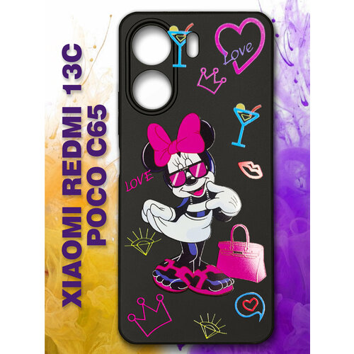 Силиконовый чехол на Xiaomi Redmi 13C с принтом Мини с фиолетовым бантом Редми 13С
