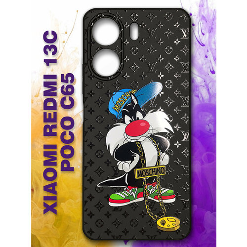 Силиконовый чехол на Xiaomi Redmi 13C с принтом Кот Moschino ЛВ Редми 13С