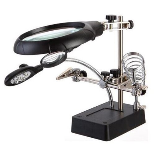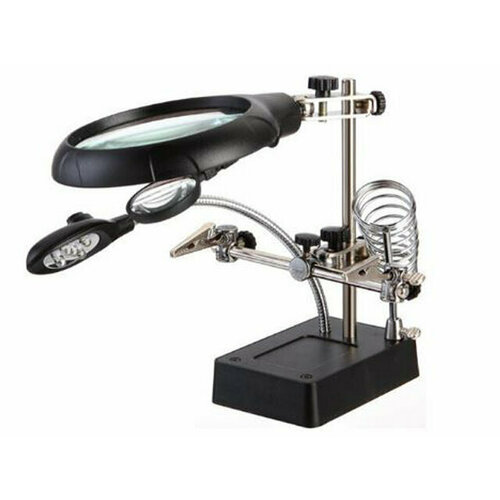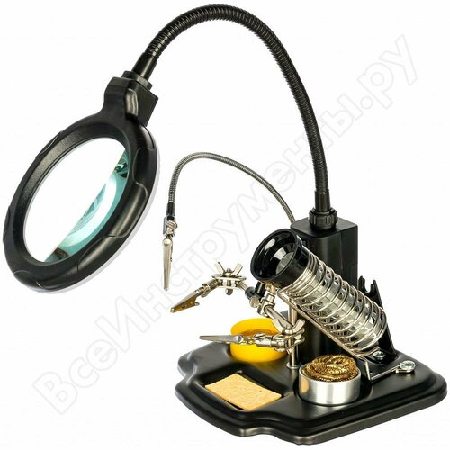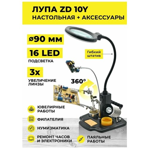 Настольная лампа-лупа ZD-10Y 16LED на гибком штативе 3х с паяльными аксессуарами, зажим третья рука, подставка для паяльника