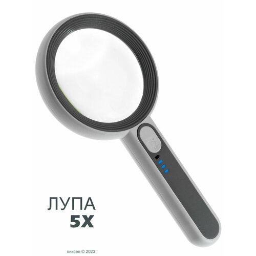 Лупа ручная увеличение 5x с подсветкой на аккумуляторе 7518C