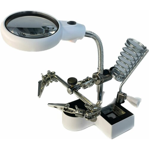 Третья рука держатель для пайки лупа с подсветкой 2LED MG16126AC1