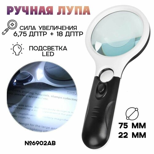 Лупа ручная Magnifier с подсветкой N. 6902-AB, 75 и 22 мм