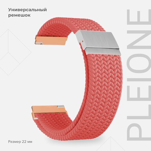 Универсальный плетеный нейлоновый ремешок для часов 22 mm LYAMBDA PLEIONE DSN-13-22-CR для часов Garmin, Samsung, Huawei, LG, Rolex, Honor, коралловый