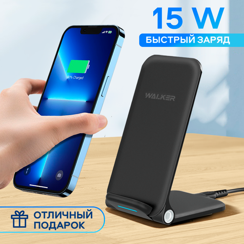 Беспроводная зарядная станция с кабелем Type-C, быстрый заряд, WALKER, WH-51, 15Вт, зарядное устройство для телефона iphone, самсунг, xiaomi, черная