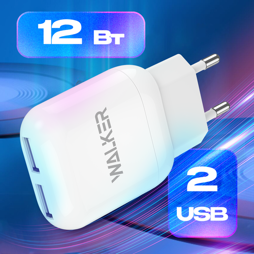 Зарядное устройство для телефона, 2 USB разъема по 2.4 A, мощность 12W, WALKER, WH-33, зарядка для iphone, блок питания на андроид