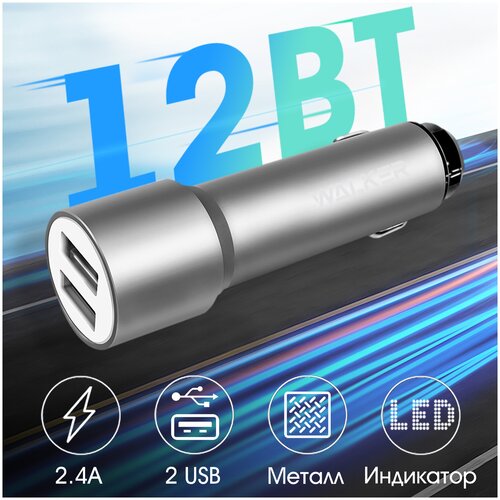 Автомобильная зарядка для телефона, удлиненный корпус, 2 USB, 2.4 А, WALKER, WCR-22, зарядное устройство в прикуриватель, автозарядка