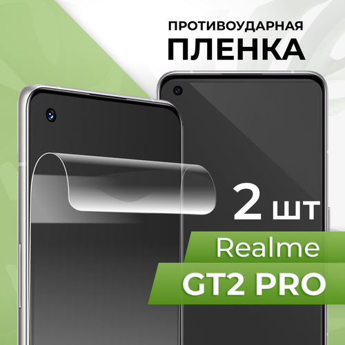 Комплект 2 шт. Глянцевая противоударная пленка для телефона Realme GT2 Pro / Защитная гидрогелевая пленка на смартфон Реалми ГТ2 Про