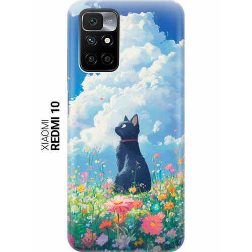Силиконовый чехол на Xiaomi Redmi 10 с принтом "Одинокий котик"