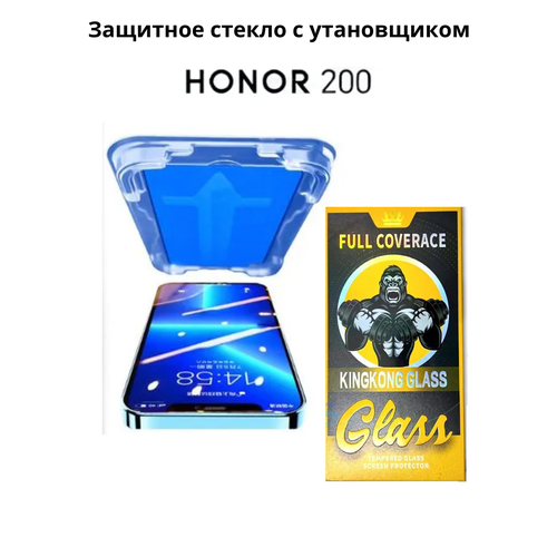 Защитное стекло с установщиком для Honor 200, твердость 9Н, олеофобное, прозрачное, с рамкой