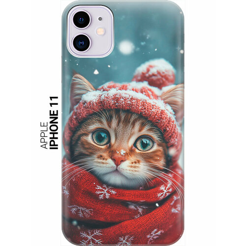 Силиконовый чехол на Apple iPhone 11 с принтом "Котик и снегопад"