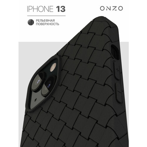 Матовый чехол на iPhone 13 / Айфон 13 плетеный, рельефный, черный