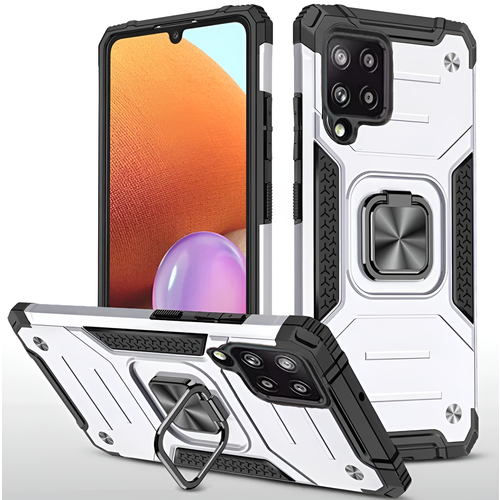 Противоударный чехол для Samsung Galaxy A12 A125, M12 серебро с пластиной и кольцом подставкой