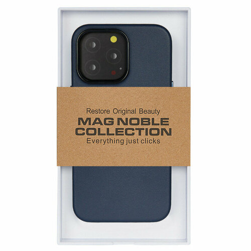 Чехол с MagSafe для iPhone 15 Pro оригинальная кожа MAG NOBLE COLLECTION NEW — Темно Синий