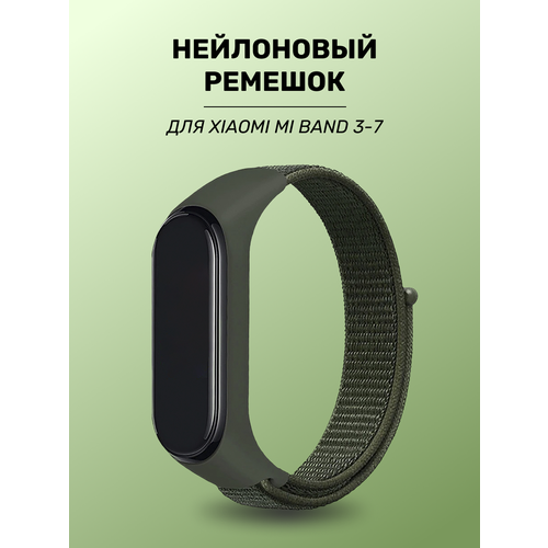 Нейлоновый ремешок для Xiaomi Mi Band 3/4/5/6/7 / Тканевый браслет для Сяоми Ми Бэнд, Хаки