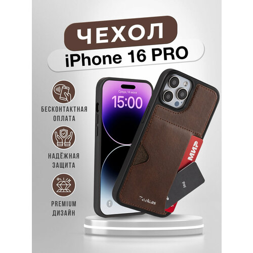 Чехол Peelcas, для iPhone 16 Pro, с карманом, кожаный, с отделением для карт