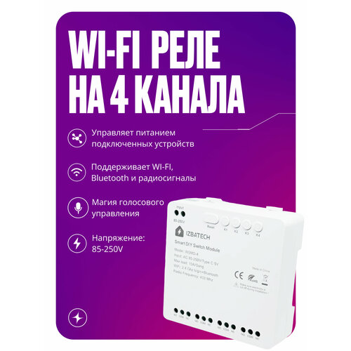 Умное реле WIFI+RF+Bluetooth, контроллер с корпусом на 4 канала для умного дома, 85-250V, 10А