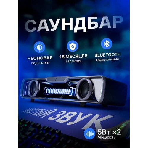 Колонка саундбар BlackRED для компьютера и ноутбука с Bluetooth и неоновой подсветкой