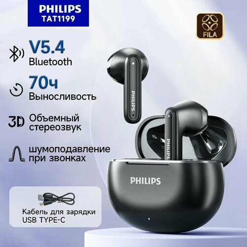 PHILIPS TAT1199 полуинертывные Bluetooth-гарнитура. AI шумоподавление, 70H autonomy, Bluetooth 5.4