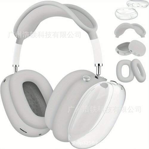 Чехол для наушников, для Apple Airpods Max, силиконовый, прозрачный, комплект из 3 частей